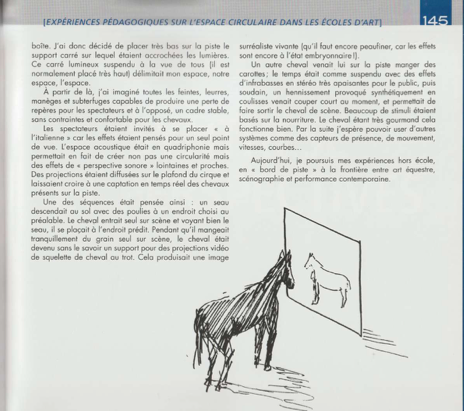 « Et si le cheval habitait de nouveaux espaces ? », dans La scène circulaire aujourd’hui, Guy Freixe et Romain Fohr (dir.), L’Entretemps, 2015, pp. 143-145.